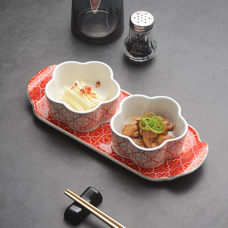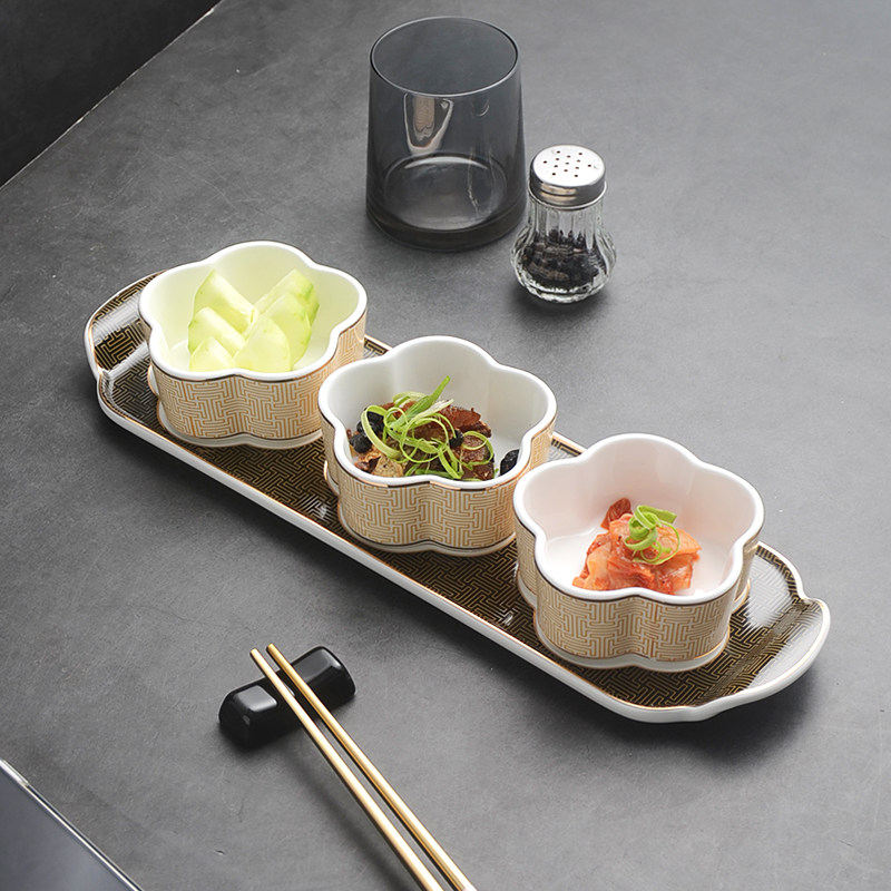 📚 中式意境菜位上开胃小菜三格二格味碟小吃冷菜盘子餐厅酒店中餐具