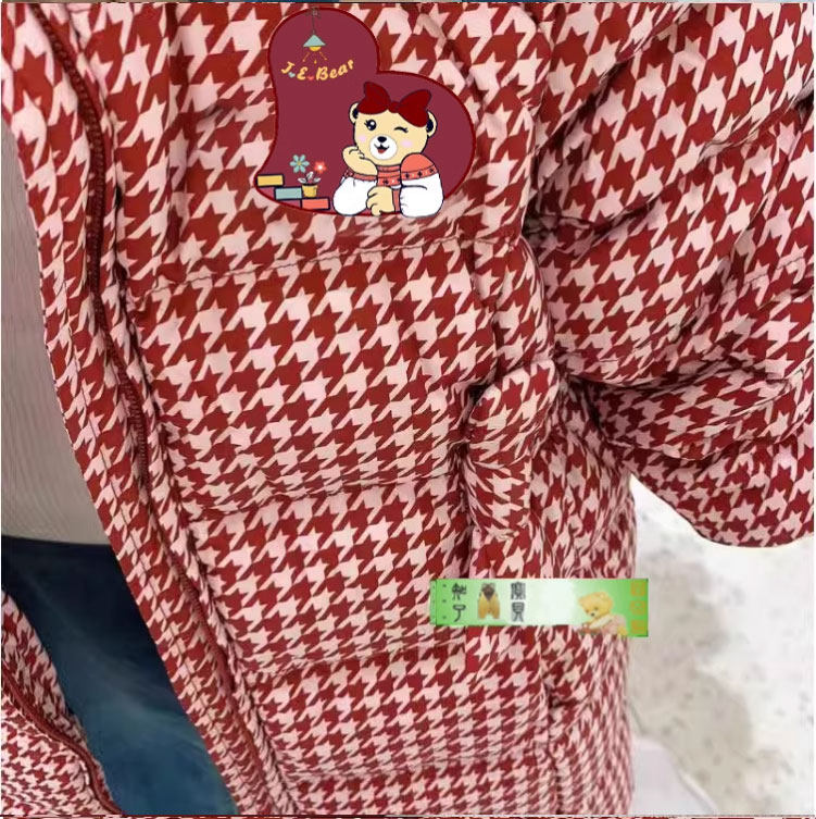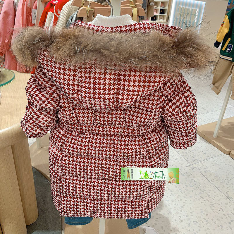 📚 白菜价清围尼小熊女童中长款保暖千鸟格子羽绒服连帽外套验货品质