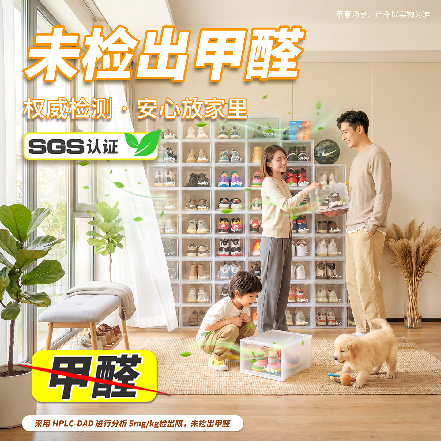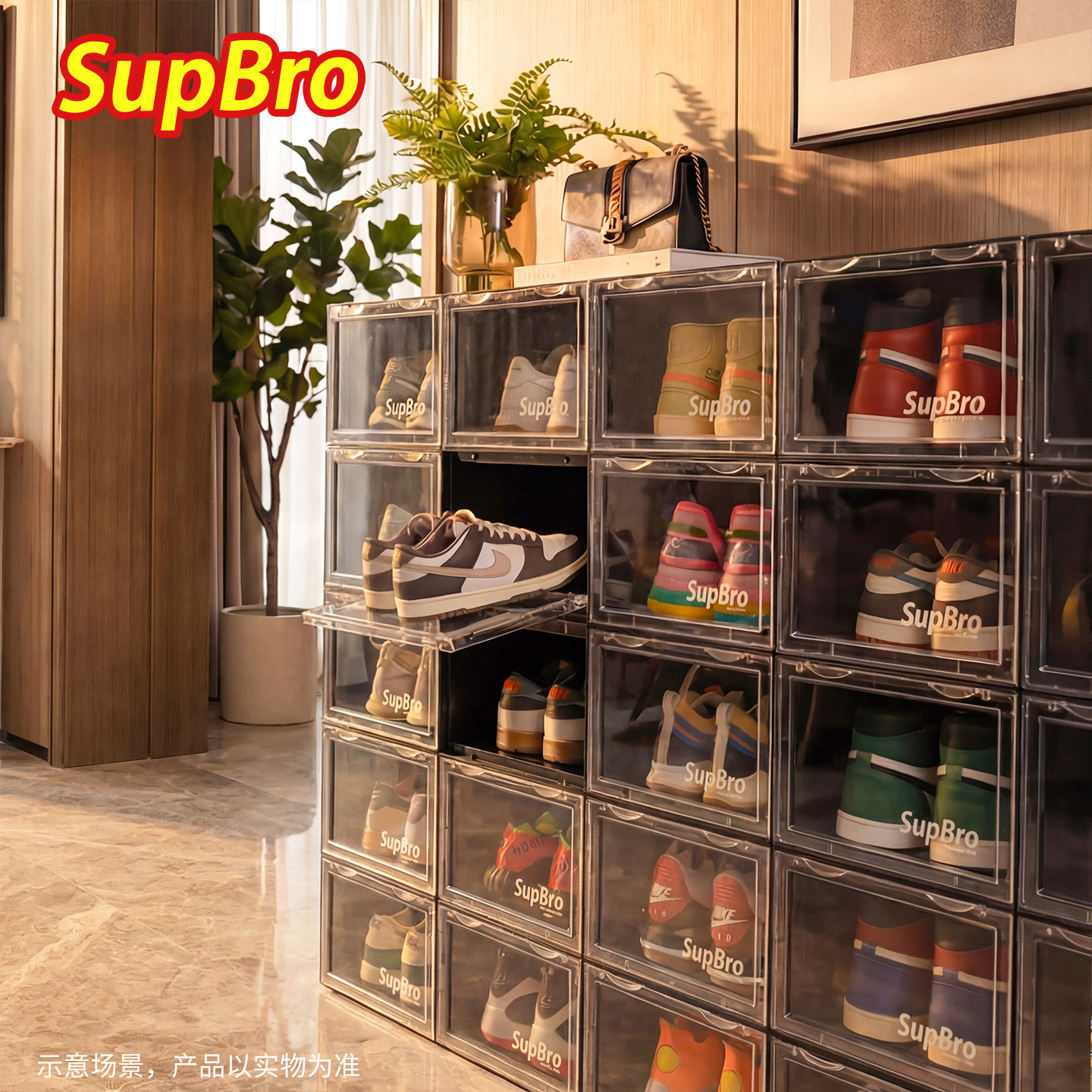 📚 SupBro官方正品黑色鞋盒正开稳固叠加鞋墙展示收纳盒入户走廊鞋柜