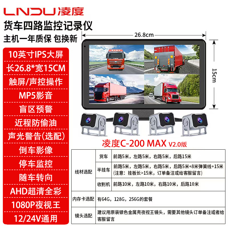 📚 凌度货车四路监控盲区预警高清夜视倒车影像停车监控12V24V一体机