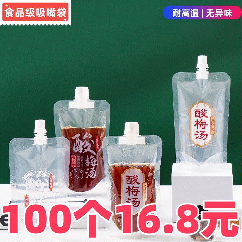 📚 酸梅汤打包袋一次性自立吸嘴袋酸梅汁包装袋液体果汁冷饮外卖袋子