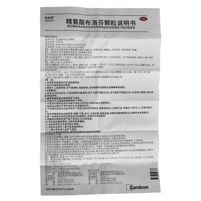 📚 12袋】司百得精氨酸布洛芬颗粒牙痛痛经头痛zy
