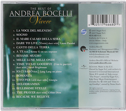 47¥ HU071 8AS7U9e4GuE¥ https://m.tb.cn/h.7GOUlsr 【中图音像】安德烈·波切利 Vivere 进口CD 1746680 --------------------- 【原售价】121元 【现售价】121元。