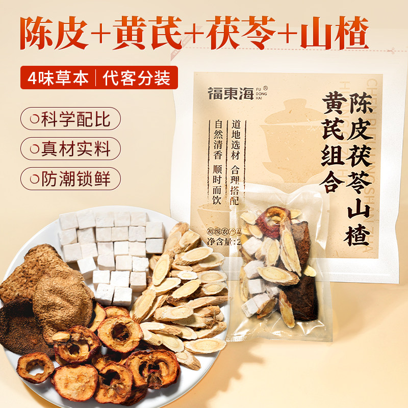 📚 福东海陈皮茯苓山楂黄芪原材料组合祛排除湿气重健去湿脾养生茶包