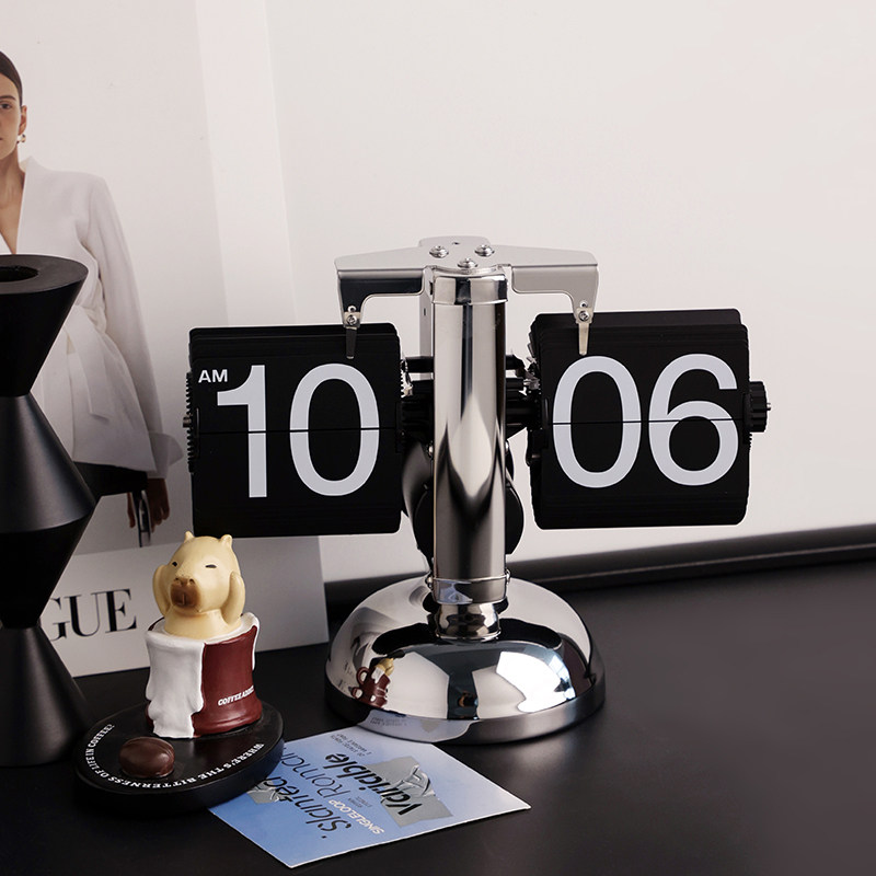 📚 创意网红机械自动翻页钟表数字台钟座钟玄关时钟客厅简约摆件摆台