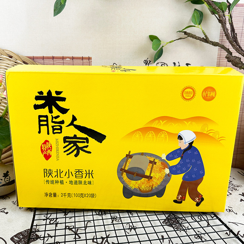 📚 米脂人家2000g陕北小香米礼盒装小袋杂粮米熬粥粗粮陕西黄米小米