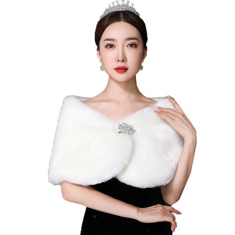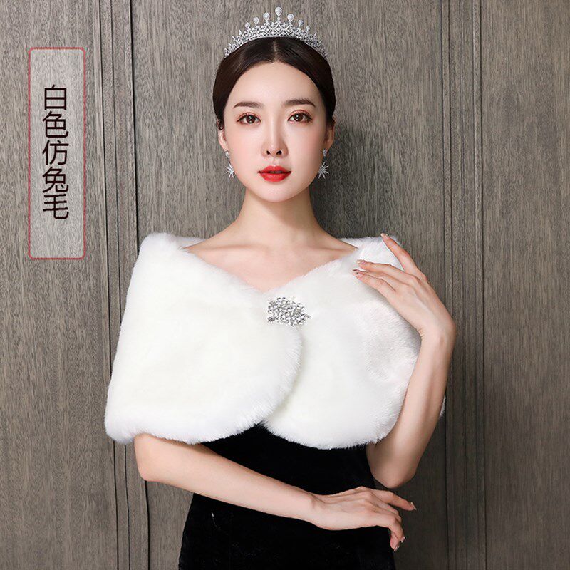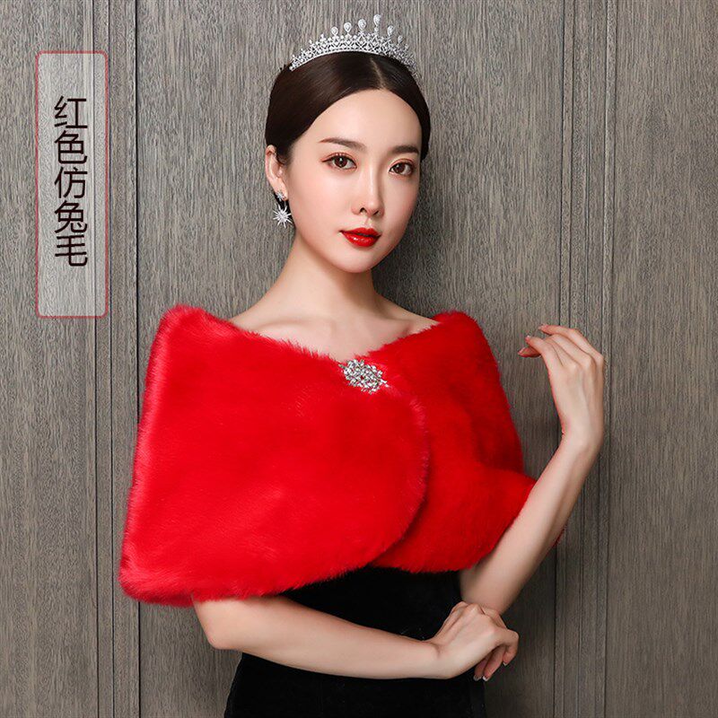 📚 新娘婚纱毛披肩白红色2023新款冬季结婚礼服保暖加厚仿皮草毛外套