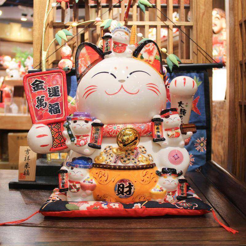 📚 乐喵福缘大号1寸存钱前罐陶瓷猫台家居客厅装饰发财86613、8礼猫