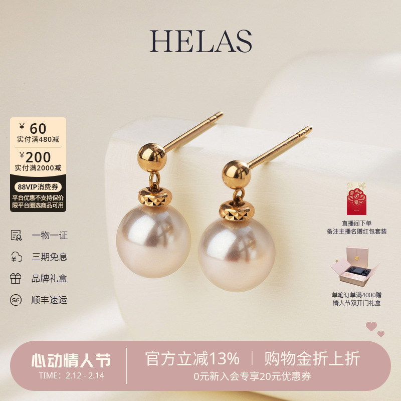 📚 HELAS赫拉官方正品Akoya海水车花珍珠耳钉耳环18k黄金情人节礼物