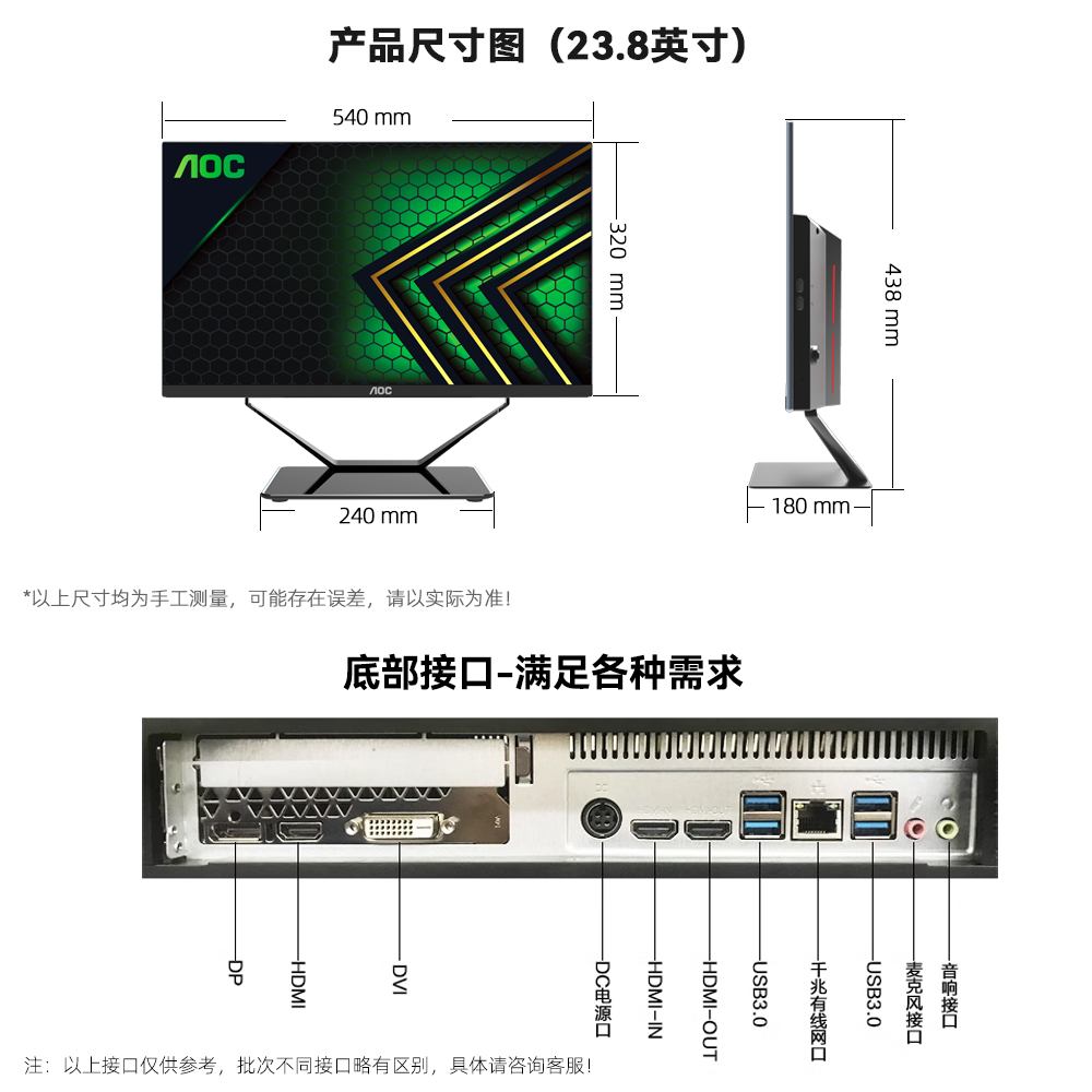 📚 AOC的卢936独显一体机电脑电竞游戏办公设计师台式整机23.8英寸