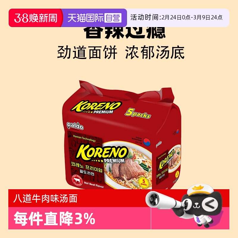 📚 【自营】进口八道koreno新品辣牛肉味汤面夜宵鲜香袋装速食学生党