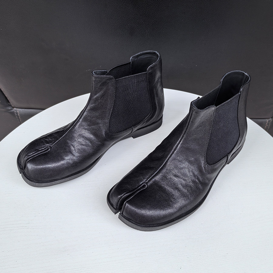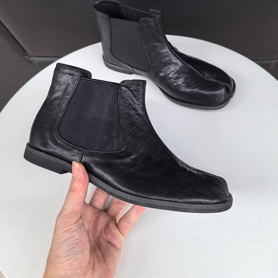 📚 2025秋冬水洗马皮tabi分趾鞋女分趾靴低跟烟筒靴真皮短靴男女同款