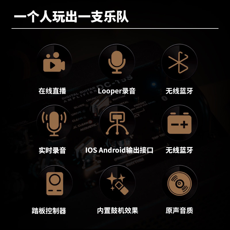 📚 JOYO电吉他音箱带效果器DC15S鼓机循环录音手机内录蓝牙充电音响