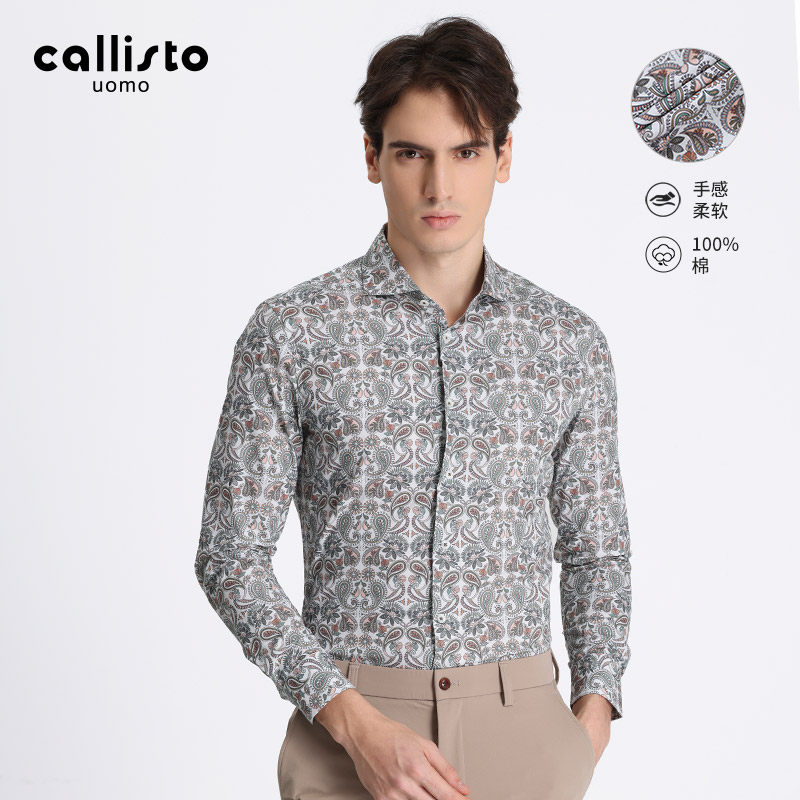 📚 亲肤舒适callisto卡利斯特春秋男士意式休闲花纹棉质长袖衬衫