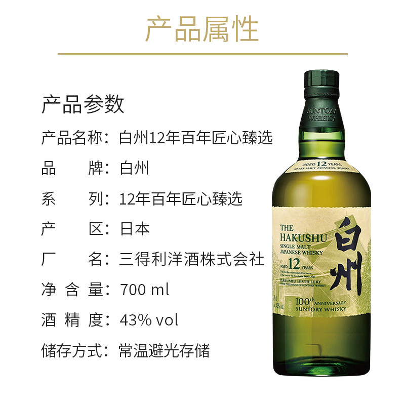 📚 三得利 白州12年单一麦芽日本威士忌百年匠心臻选SuntoryHakushu
