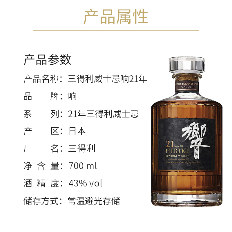 📚 Hibiki 三得利响21年调配型威士忌700ml日本进口洋酒正品行货礼盒