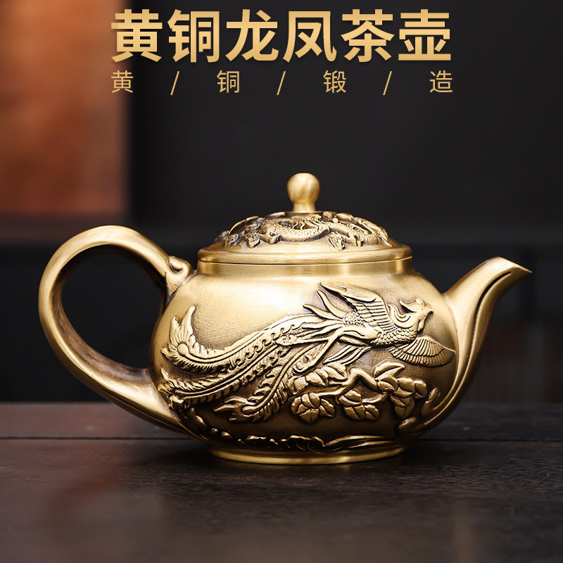 📚 黄铜龙凤呈祥茶壶茶具婚前供奉用品供水壶供佛拜天公茶壶供水杯子