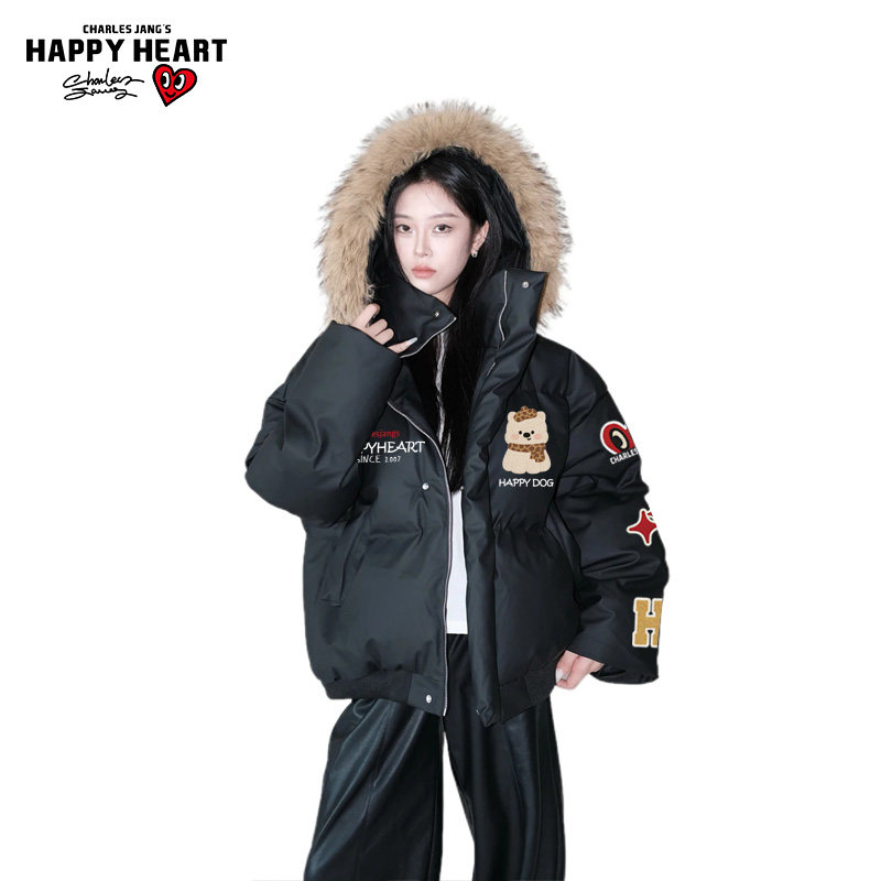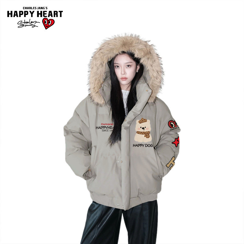📚 查尔斯桃心连帽面包服棉衣男女冬季加绒保暖小狗爱心印花棉服外套
