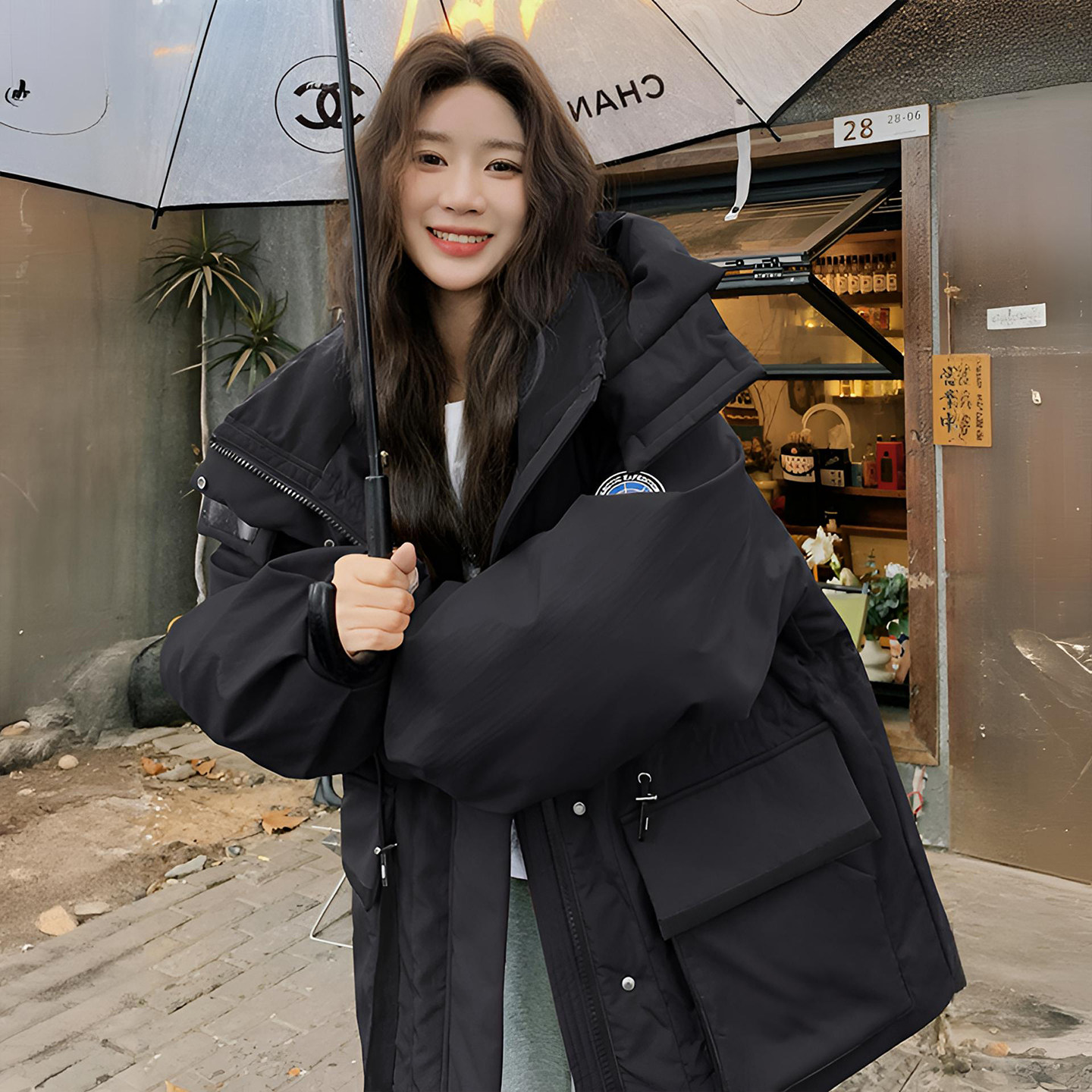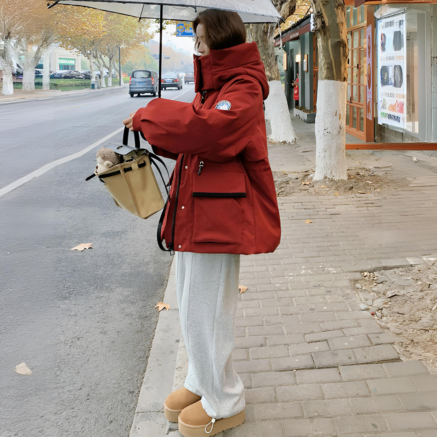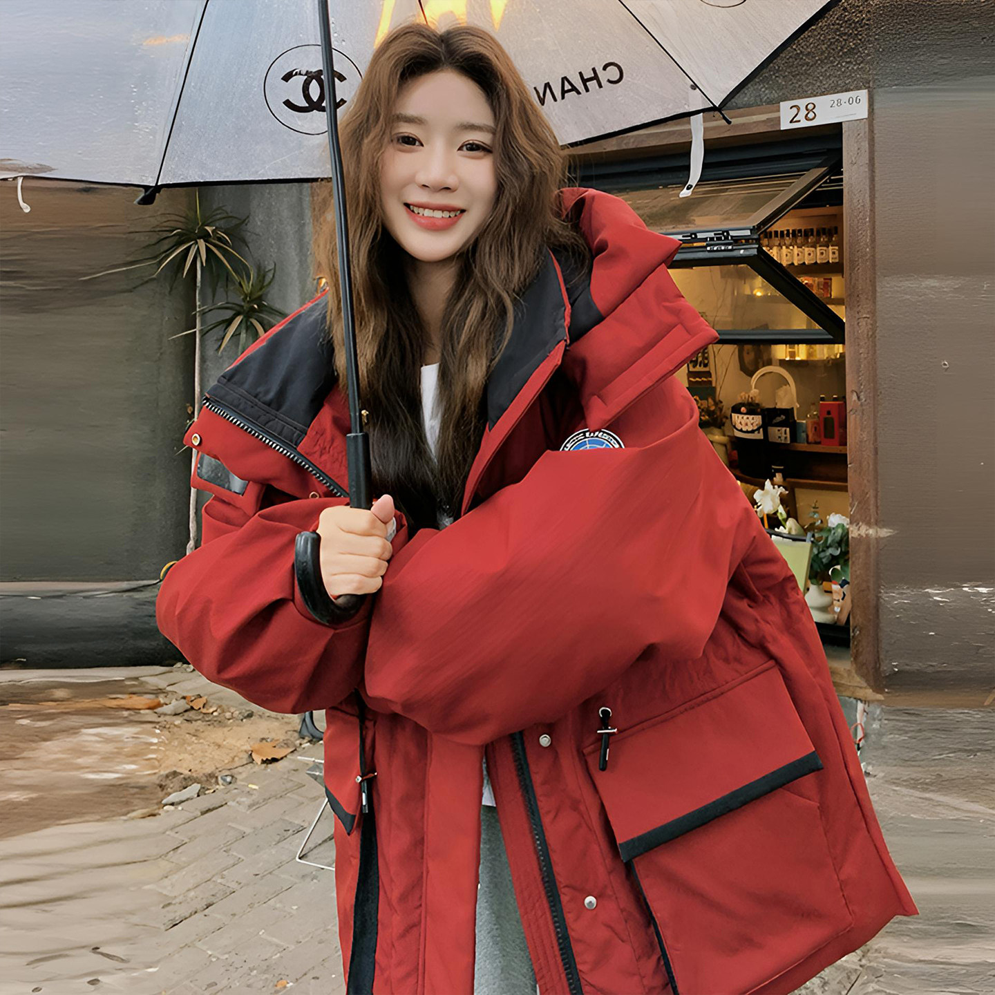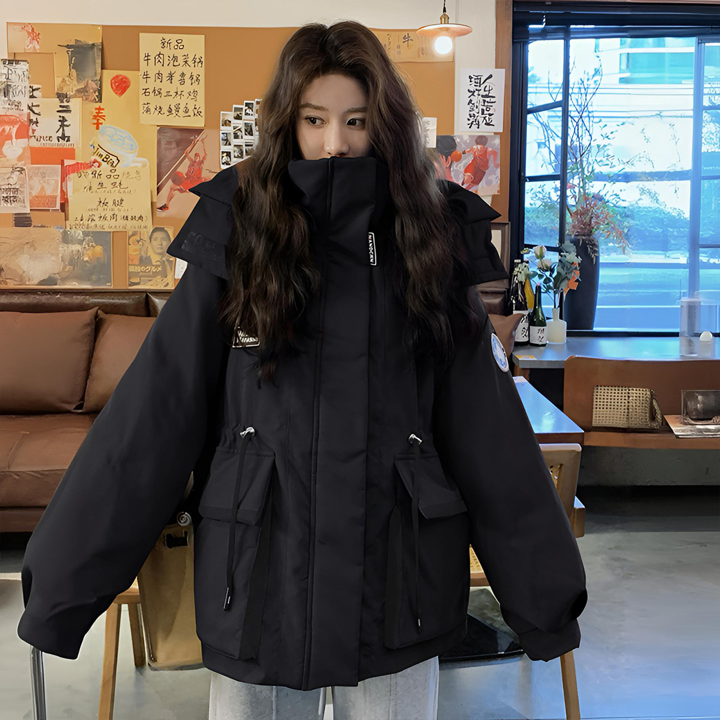 📚 胖mm特大码红色慵懒风工装棉服女显瘦不臃肿加厚保暖连帽棉衣外套