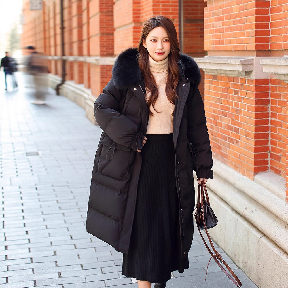 📚 新款胖妹妹特大码女装200斤显瘦收腰狐狸毛领长款羽绒服