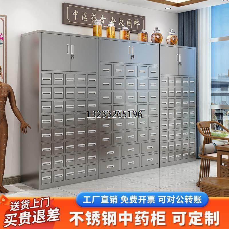 📚 不锈钢中药柜中医诊所药店调剂台家用百子柜加厚草药整体橱柜药斗