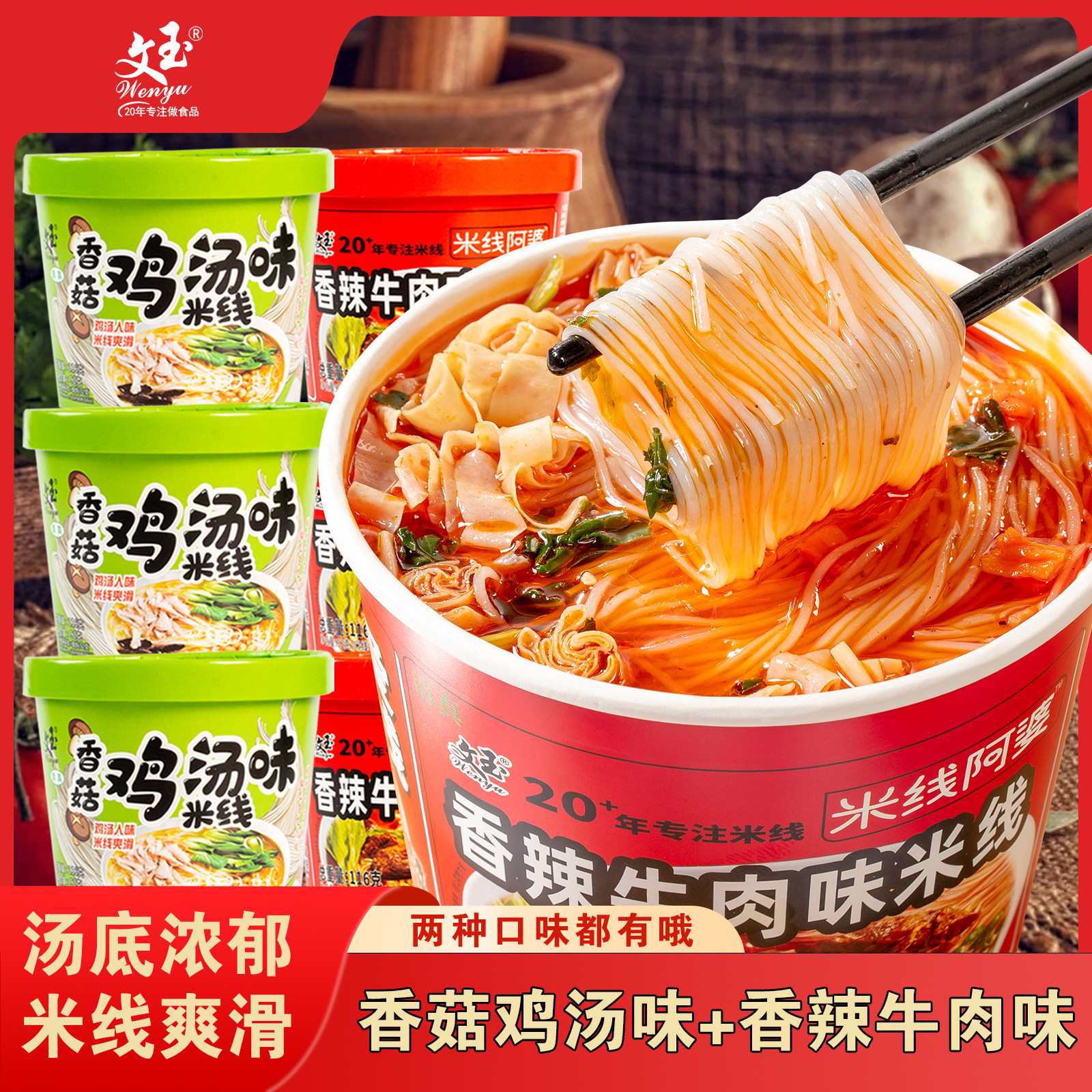 📚 正品文玉香菇鸡汤细米线桶装速食冲泡方便食品清真
