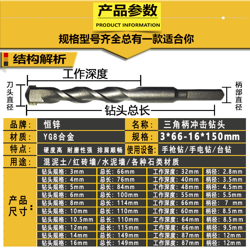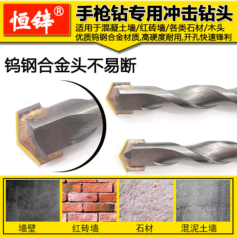 📚 手电钻手枪钻三角柄冲击钻头墙壁混泥土水泥墙建工钻头套装3-16mm