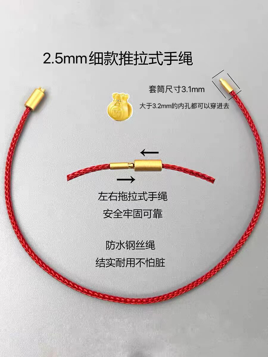 📚 2.5mm转运珠手绳细款钢丝绳皮绳硬金黄金串珠手绳本命年红绳男女