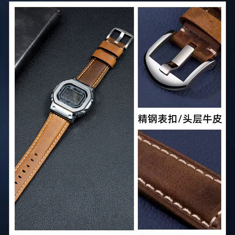 📚 适配卡西欧DW5600改装表带 DW5610/GM5600复古疯马皮真皮手表带男