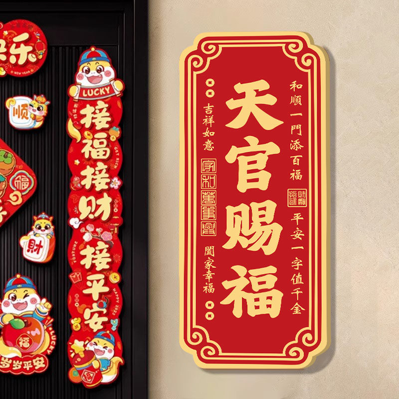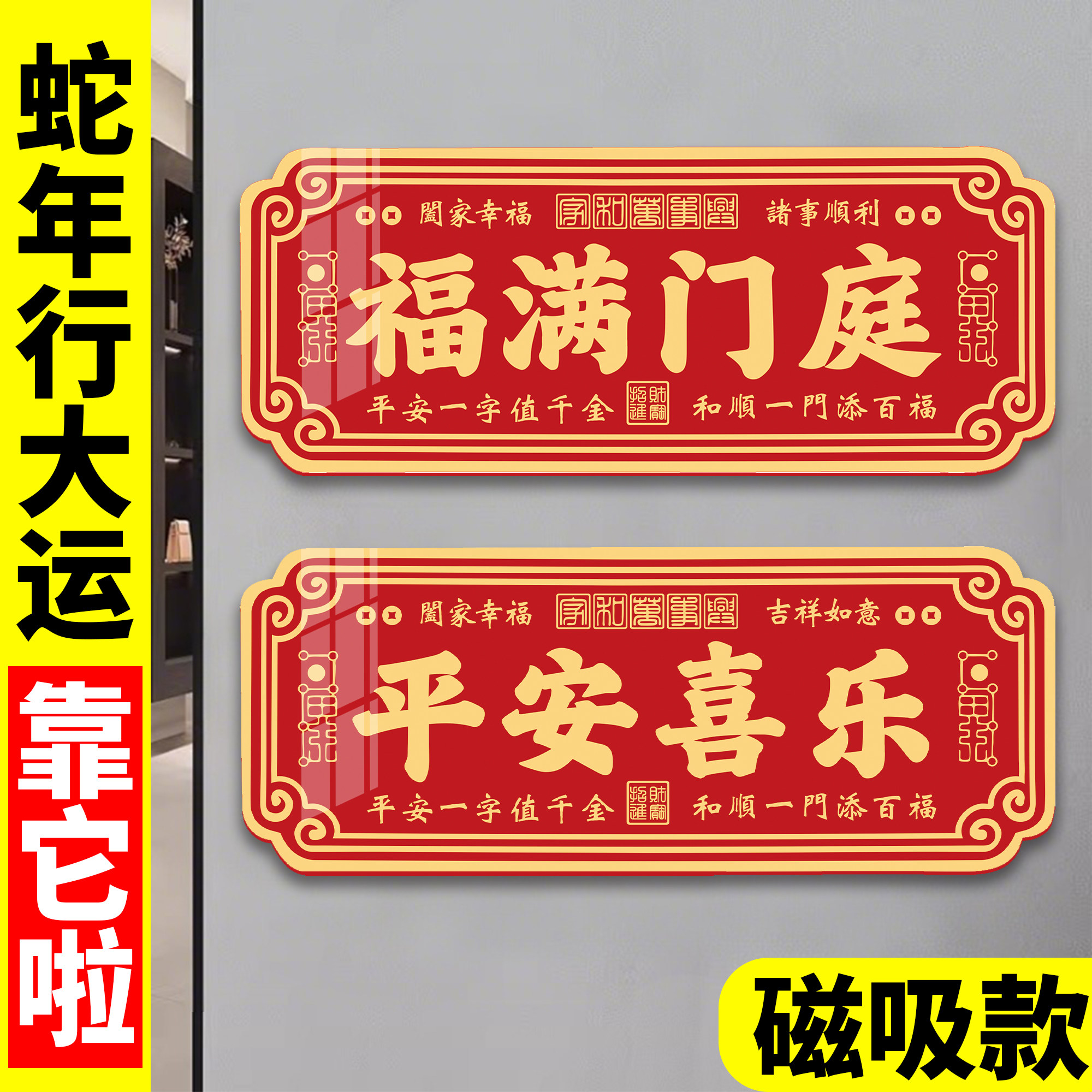 📚 平安喜乐门贴新年家庭装饰磁吸门牌入户镇宅横批福满门庭玄学牌hb
