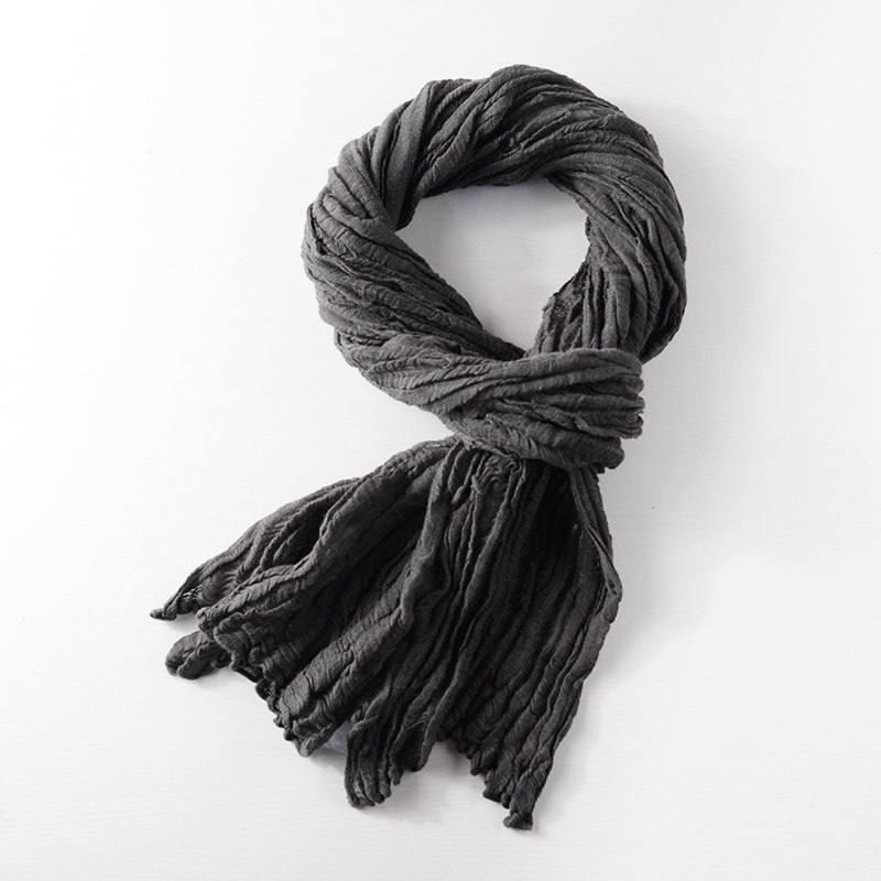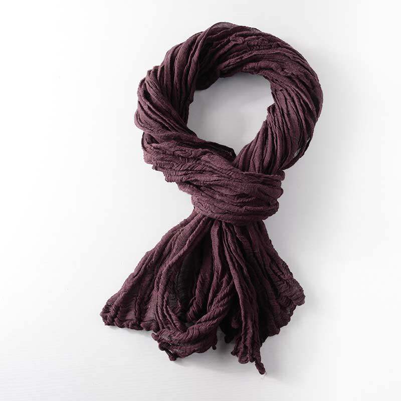 📚 日系文艺亚麻围巾纯色棉麻围巾男女休闲复古文艺褶皱长围脖秋冬