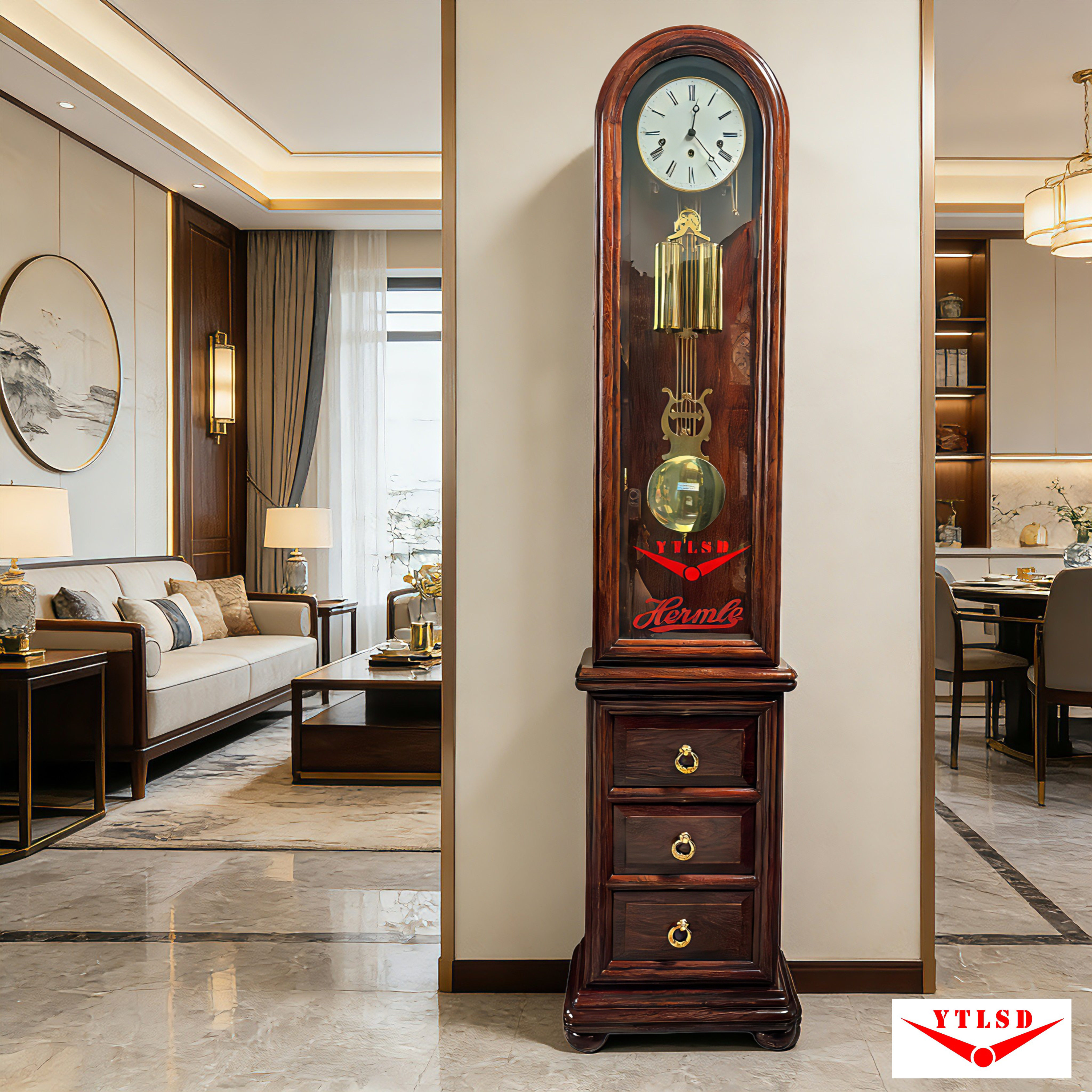 📚 利时达德国赫姆勒红木落地钟别墅大平层客厅机械钟轻奢新中式欧式