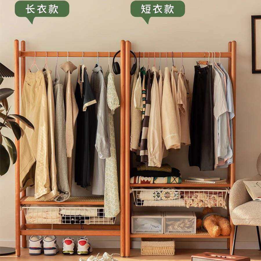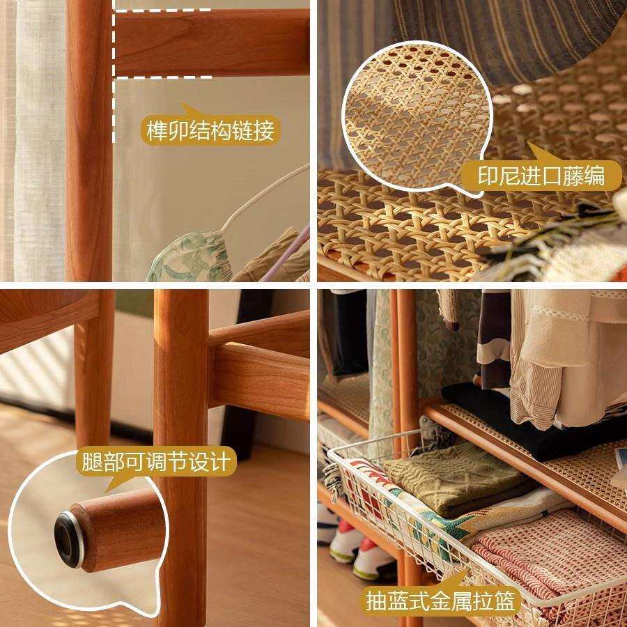 📚 北欧实木衣架藤编落地满满衣帽架卧室多功能小挂衣架樱桃木置物架