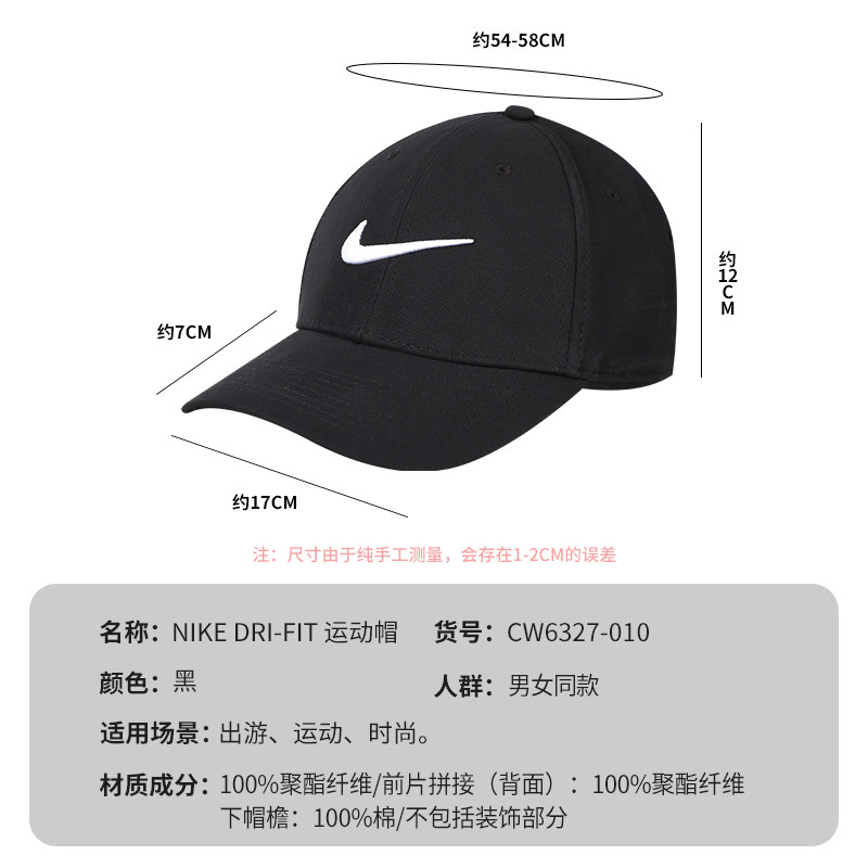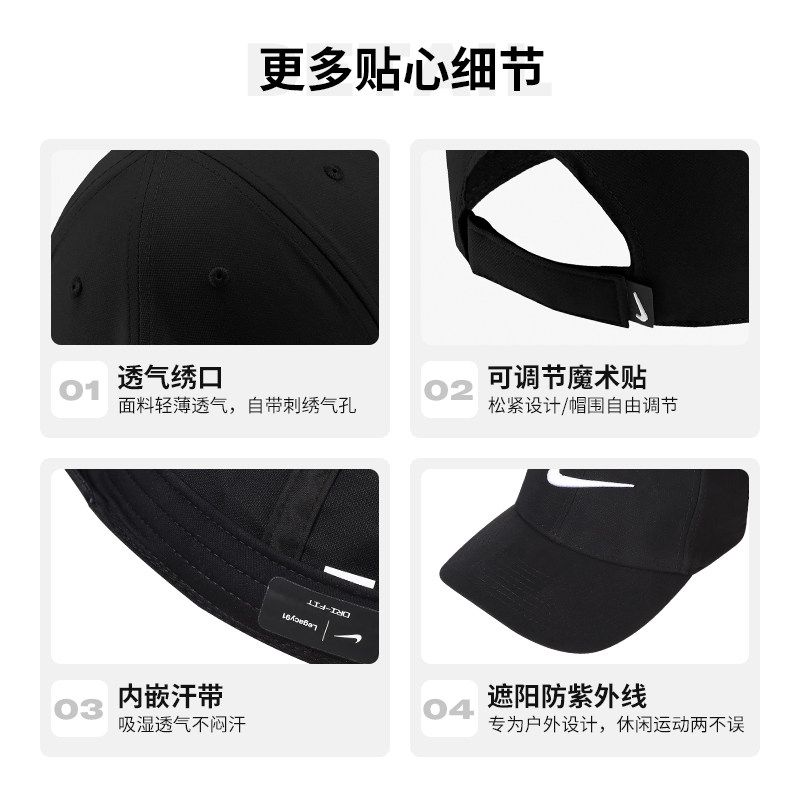 📚 Nike耐克鸭舌帽可调节运动帽夏户外遮阳棒球网球帽舒适柔软CW6327