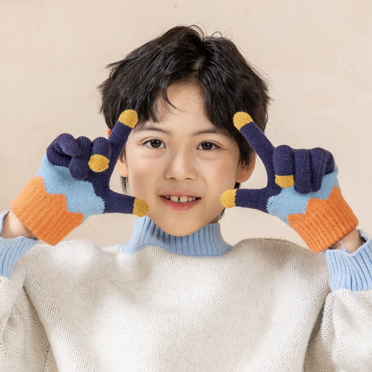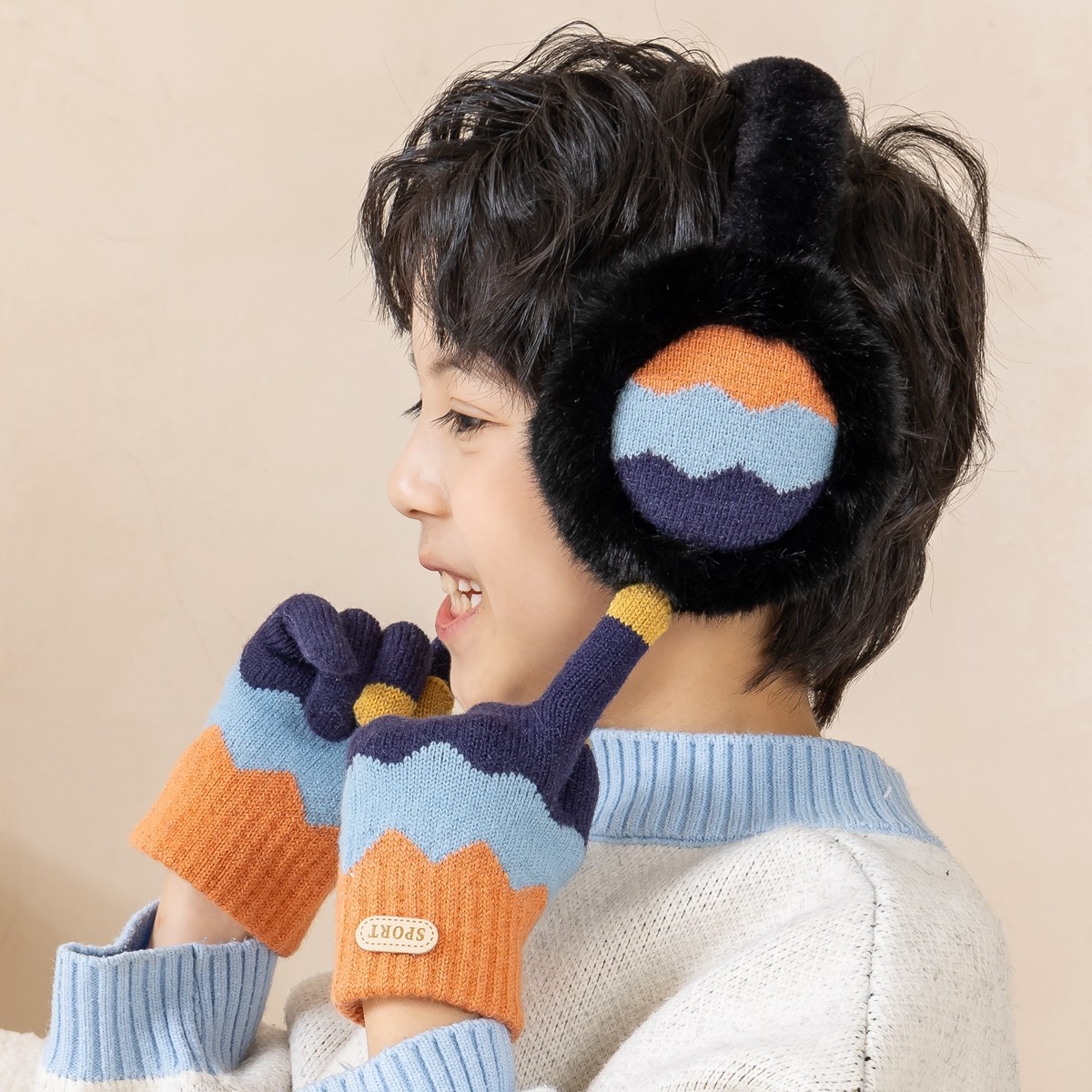 📚 儿童手套耳罩男童五指秋冬季保暖防寒小学生男孩冬天分指针织手袜