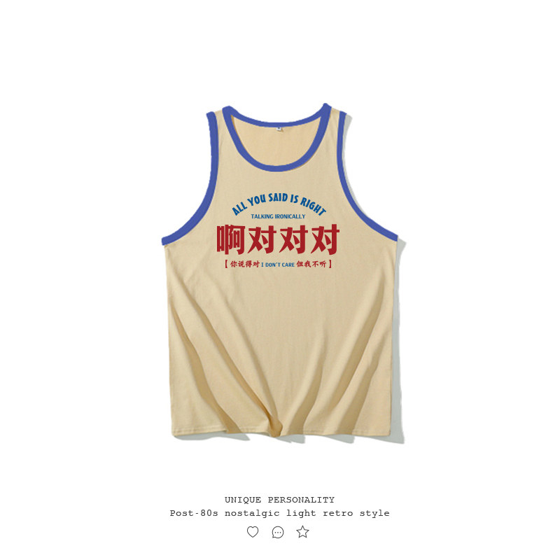 📚 不二玩味纯棉夏装国潮妈见打系列中大童彩边背心啊对对对但我不听