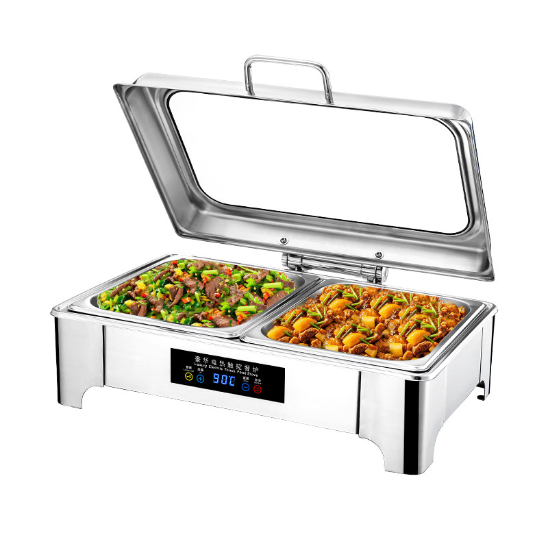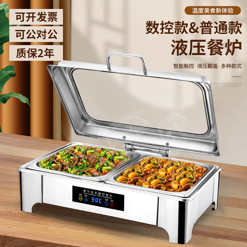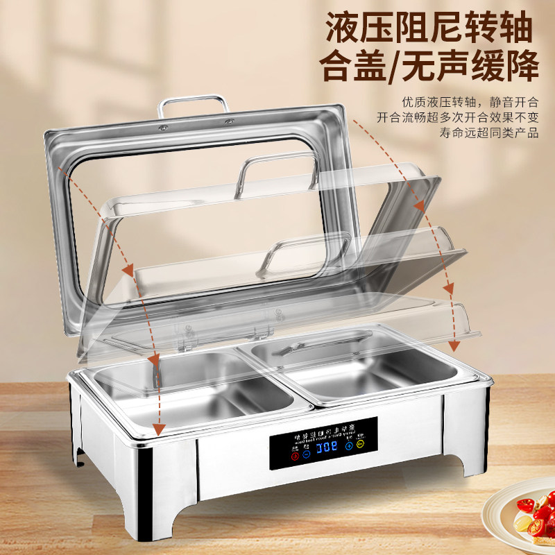 📚 自助餐保温炉触控显示屏餐炉不锈钢酒店布菲炉电热可视翻盖保温锅