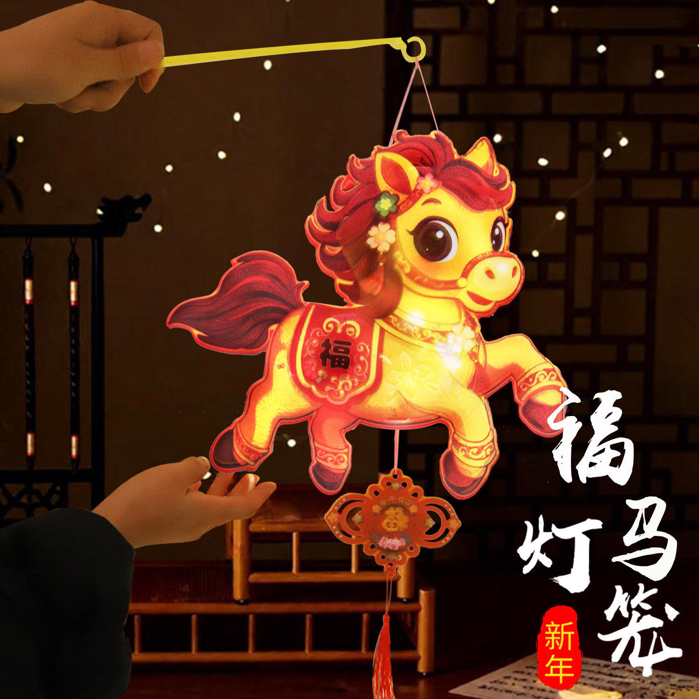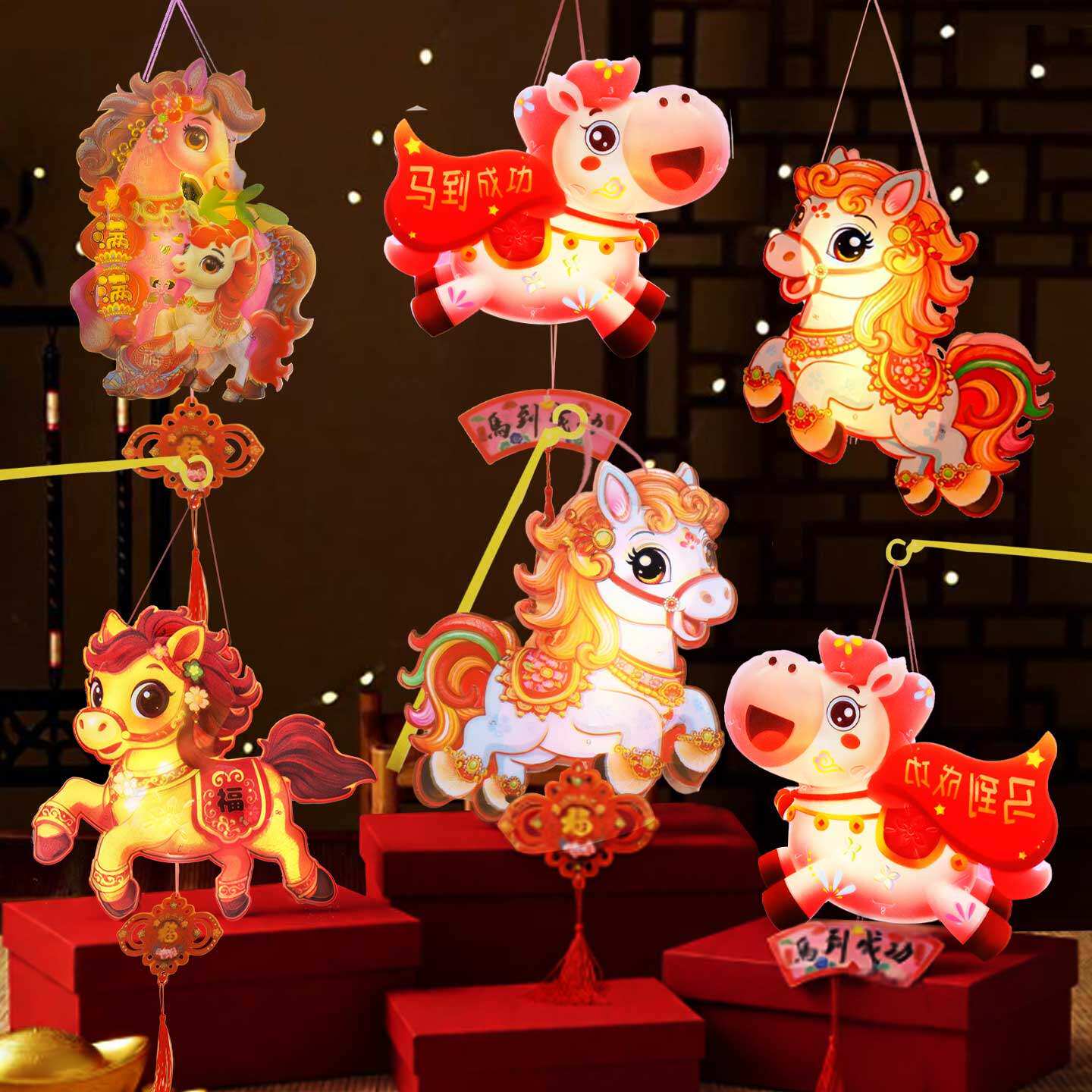 📚 手工灯笼制作diy材料2026马年新年儿童手提发光灯元旦自制小马灯