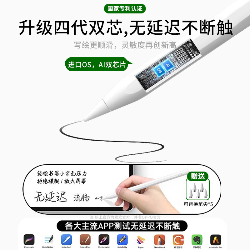 📚 适用OPPO Pad5平板电容笔oppopad4pro三代3Pro触控笔air5手写笔Pad2触屏笔SE一加Pad2Pro通用1手机平替pencil