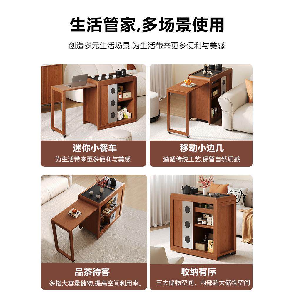 📚 覆古茶几可移动实木茶柜客厅小公寓茶几一体式全自动2025新款