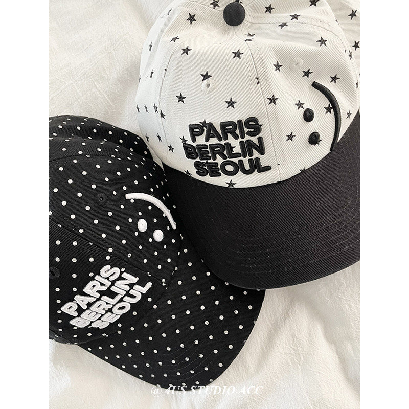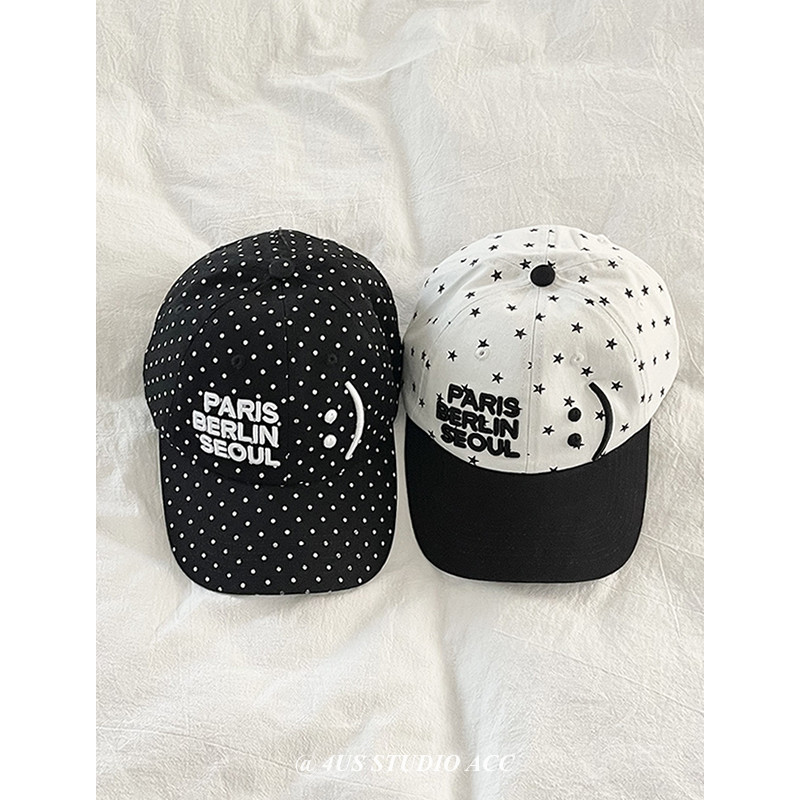 📚 韩国ig博主同款春夏季鸭舌帽女可爱笑脸符号星星波点棒球帽显脸小