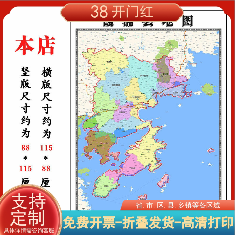 📚 霞浦县折叠地图115cm入户门墙贴福建省宁德市行政交通区域划分