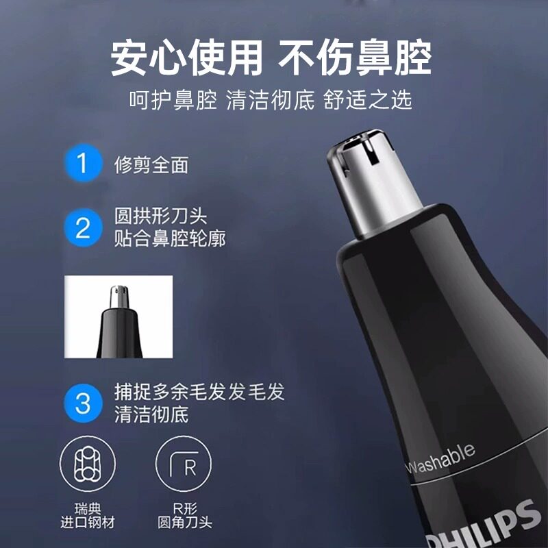 📚 飞利浦鼻毛修剪器NT1620电动剃剪鼻毛刀男女通用全身水洗电池式