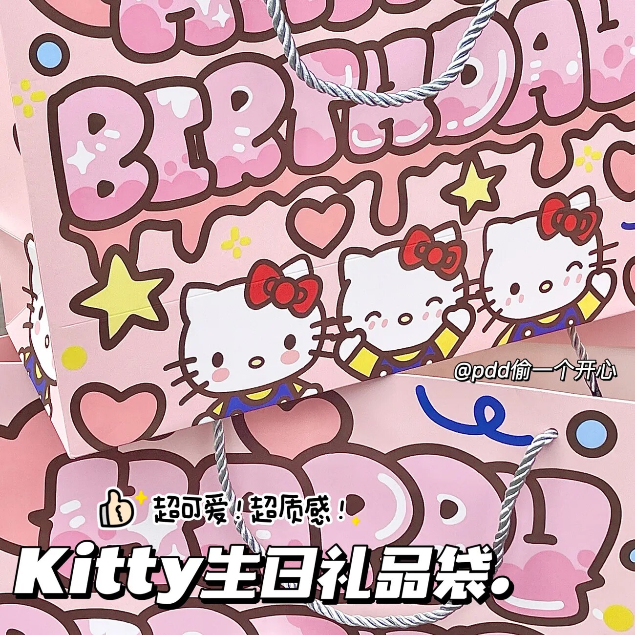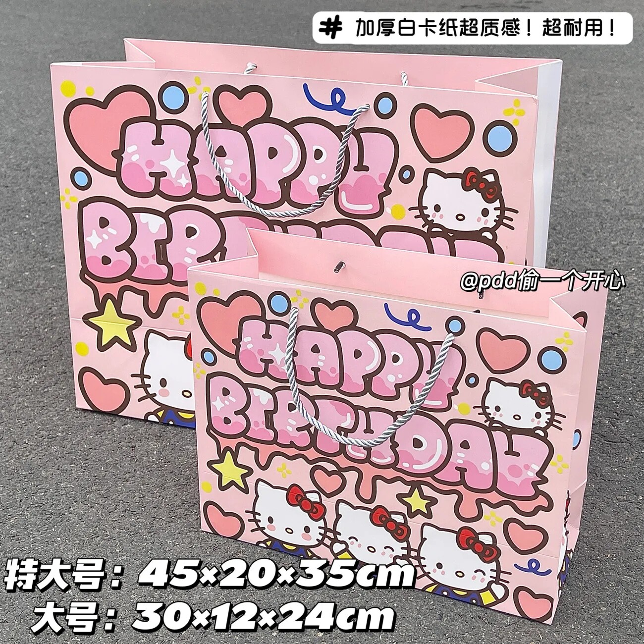 📚 凯蒂猫生日快乐硬卡纸加厚礼品袋可爱手提袋收纳袋大号礼物手拎袋