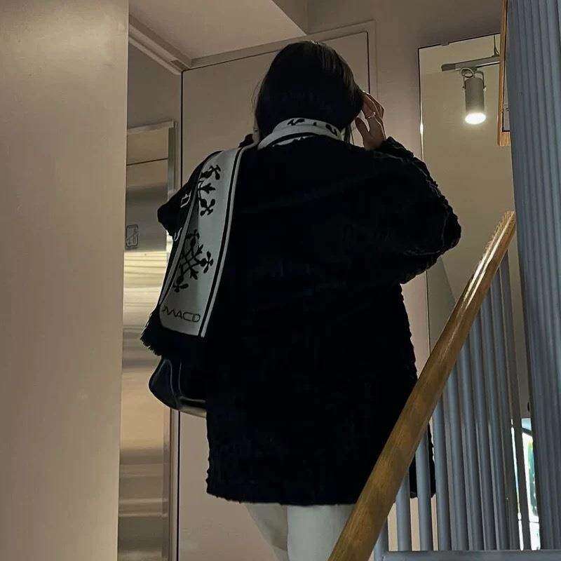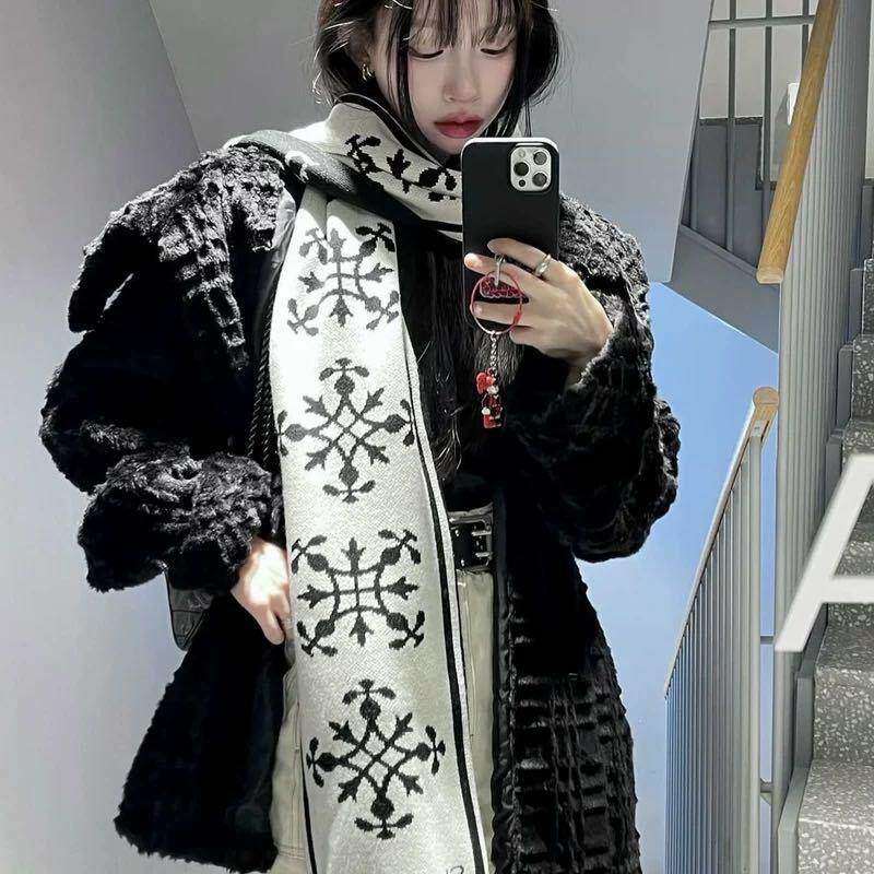 📚 ●callmebabysoft韩国小众~金云鹤复古雪花字母流苏撞色保暖潮牌
