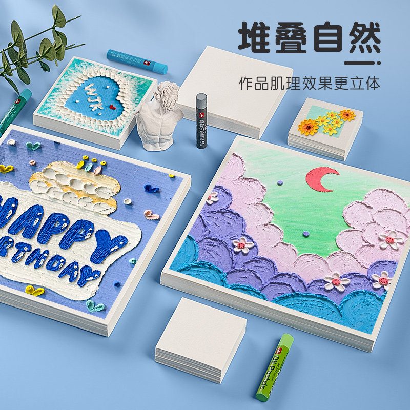 📚 油画棒专用纸油画纸加厚200g正方形10cm空白绘画画纸特种纸蜡笔素描卡纸儿童小学生刮刀工具套装白色肌理镂空