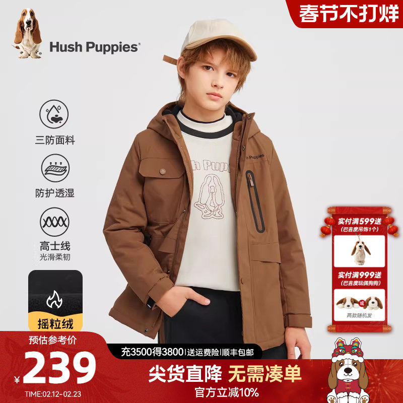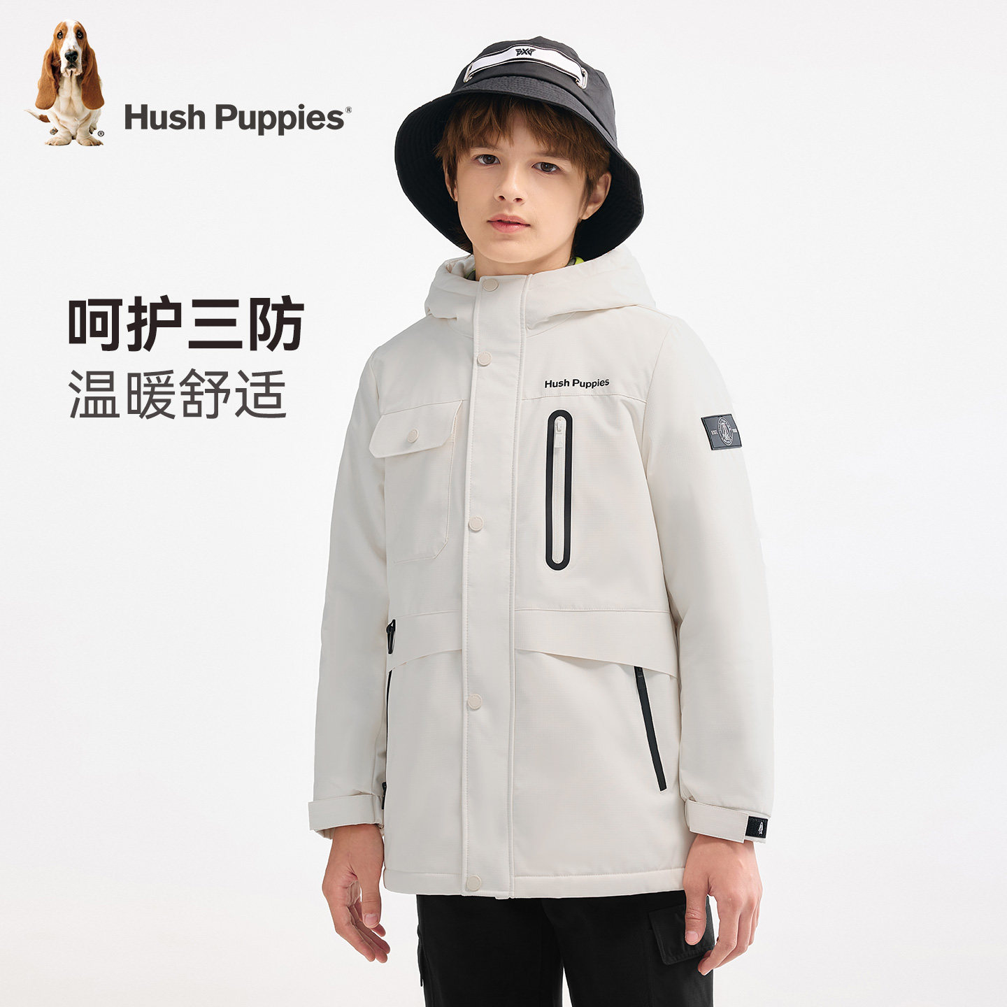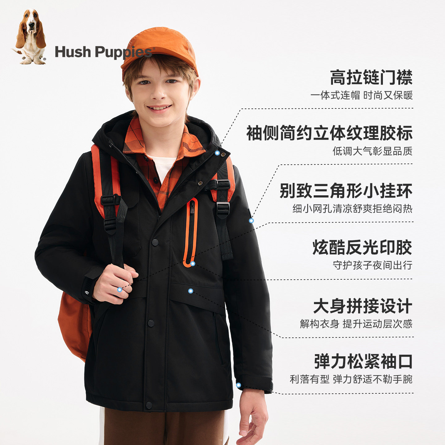 📚 暇步士童装男童加绒风衣秋冬新款大童三防保暖连帽儿童工装厚外套