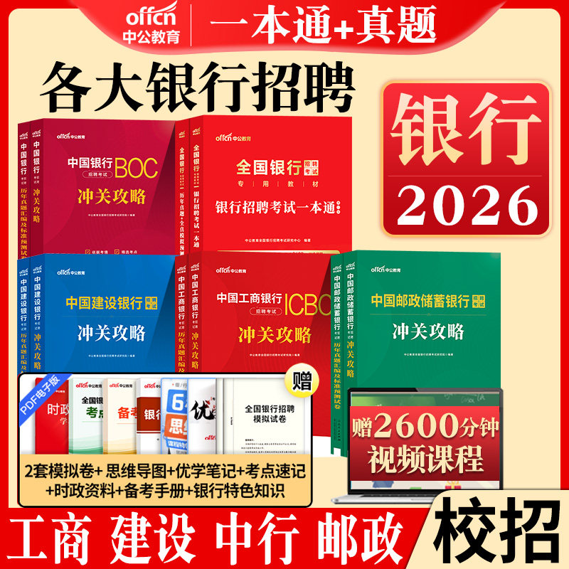 📚 中公银行秋招2026银行招聘考试资料一本通教材真题刷题库全国中国工商建设邮政储蓄农业考银行春季校招校园招聘备考笔试行测送网课