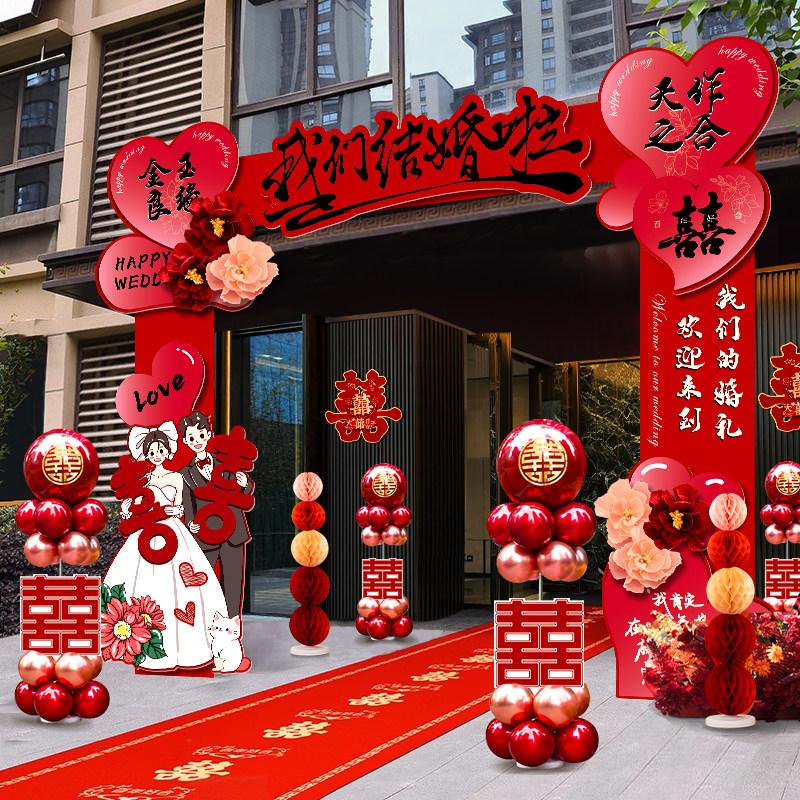 📚 结婚kt板拱门婚礼迎宾立柱婚庆场景布置支架门口装饰室外路引农村