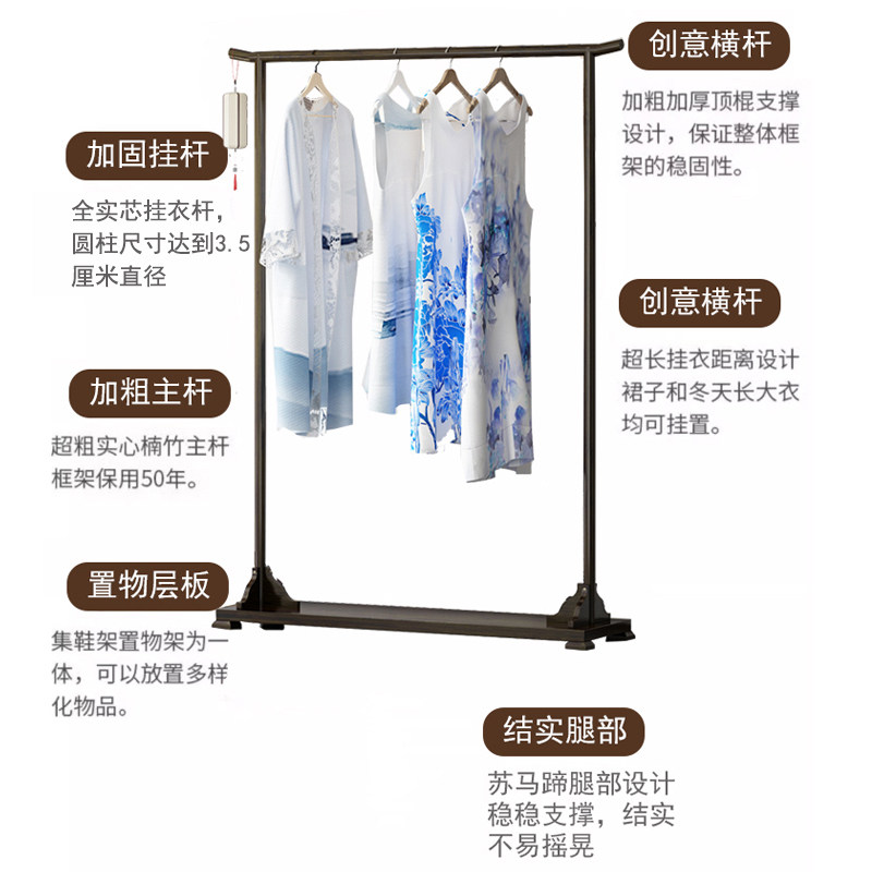 📚 中式衣架落地架实木民宿卧室酒楼餐厅茶室复古仿古挂衣架古风衣架